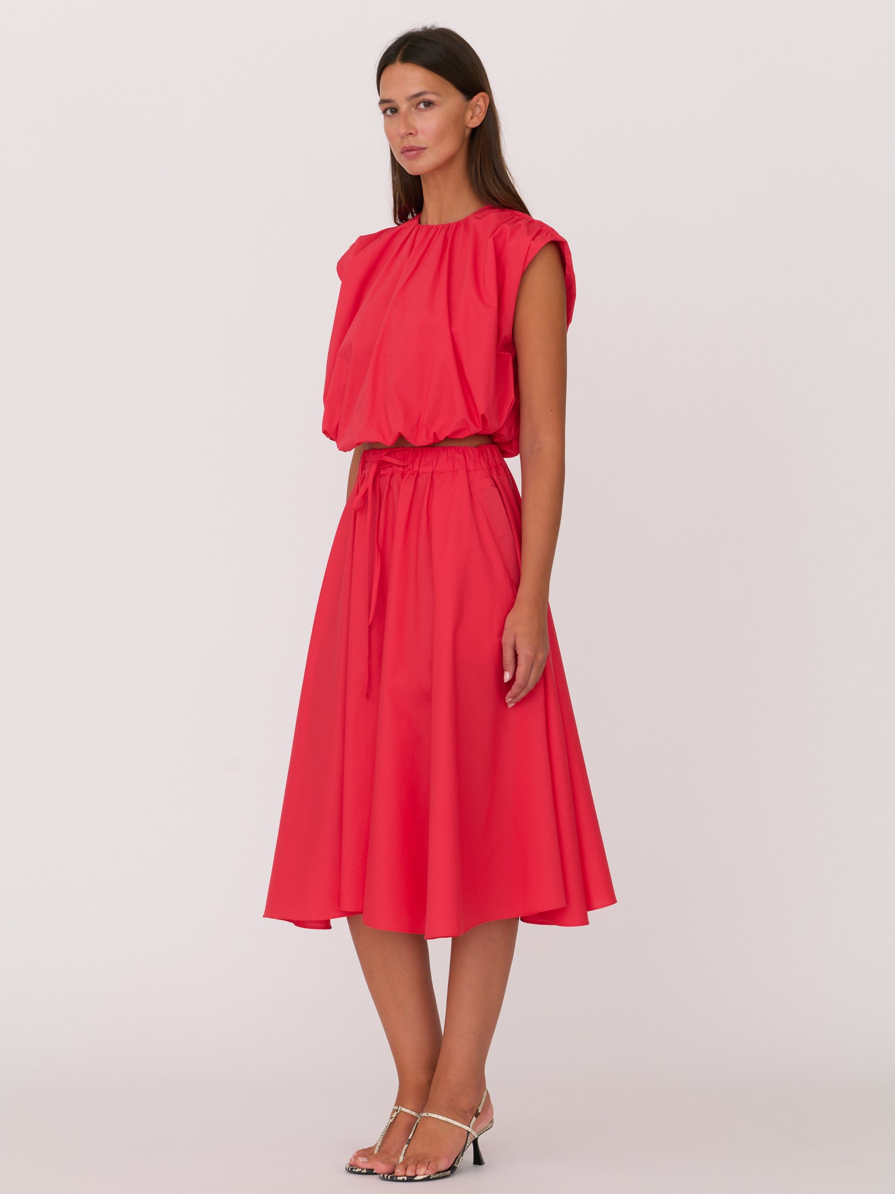 The Angie Skirt is an easy, feminine staple, with side pockets and side slits. An elastic waistband with an adjustable drawstring offers comfort and versatility to your everyday wardrobe. Perfect for effortless styling from day to night.