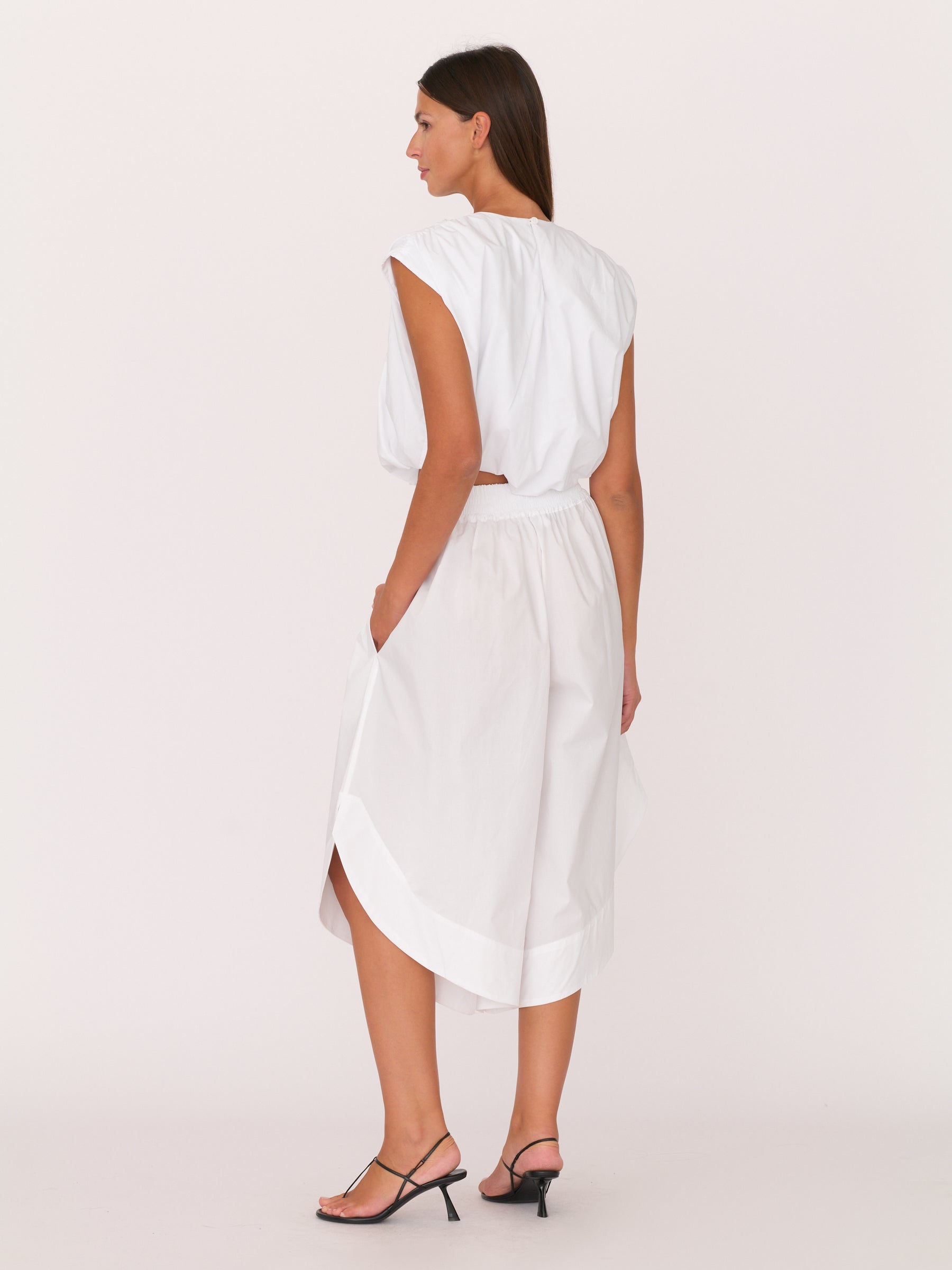 A feminine poplin shirt with soft volume and drape. The Lya features a hidden elastic waist for subtle shape and a delicate button closure at the back. Light, effortless, it pairs beautifully with a pair of high waisted jeans.