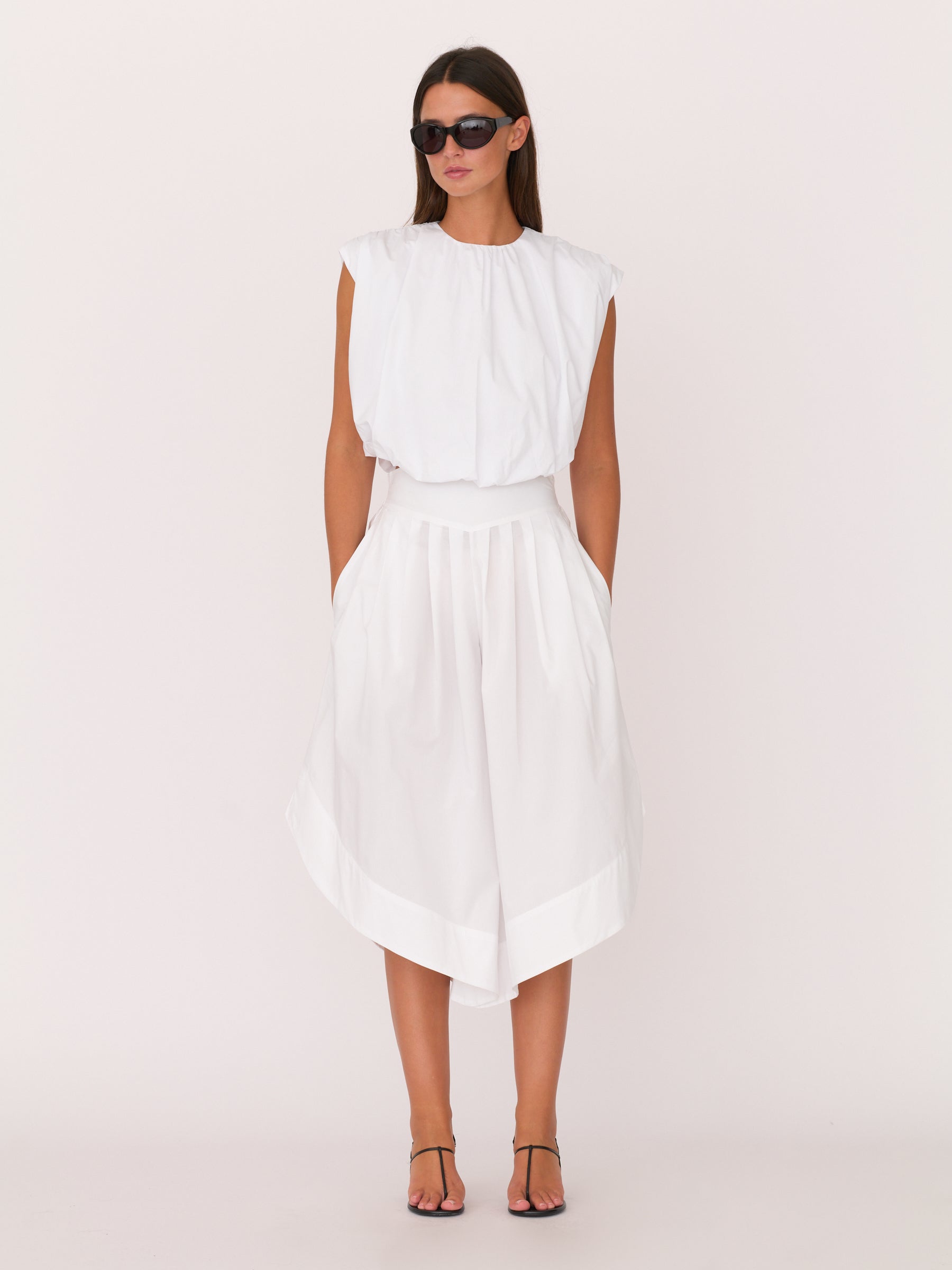 Our best-selling Rafa Short, almost skirt-like in silhouette. Softly tailored with an elasticated back waist for comfort and ease. Feminine, relaxed, and designed to move with you.